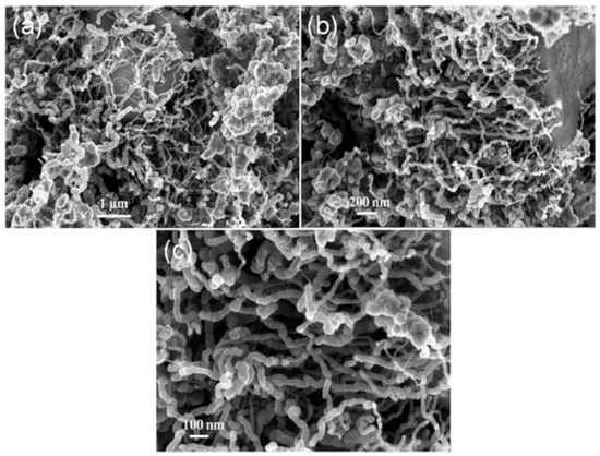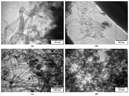- Takenaka, S.; Ishida, M.; Serizawa, M.; Tanabe, E.; Otsuka, K. Formation of Carbon Nanofibers and Carbon Nanotubes through Methane Decompositionover Supported cobalt Catalysts. J. Phys. Chem. B 2004, 108, 11464–11472. [Google Scholar] [CrossRef]