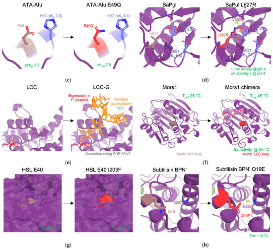 | values | Modifying electrostatic microenvironment with single-point mutations to fine-tune the s of catalytic residues. | activity ↑ (in different pH) | RD, DE | [11,58,59,113] |