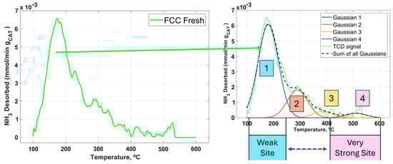 NH3–TPD analysis and deconvolution results using four gaussian functions for fresh FCC catalyst sample.