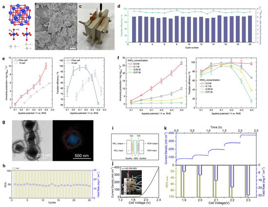- Feng, Y.; Ren, J.-T.; Sun, M.-L.; Yuan, Z.-Y. Valorization systems based on electrocatalytic nitrate/nitrite conversion for energy supply and valuable product synthesis. Chem. Sci. 2025, 16, 1528–1559. [Google Scholar] [CrossRef]