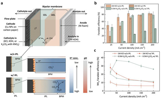 - Huang, P.W.; Song, H.; Yoo, J.; Chipoco Haro, D.A.; Lee, H.M.; Medford, A.J.; Hatzell, M.C. Impact of Local Microenvironments on the Selectivity of Electrocatalytic Nitrate Reduction in a BPM-MEA System. Adv. Energy Mater. 2024, 14, 2304202. [Google Scholar] [CrossRef]