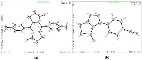 (a) Crystal structure of 2i (CCDC 2383585). (b) Crystal structure of 3q (CCDC 2383586). Ellipsoids are displayed at the 50%—probability level.
