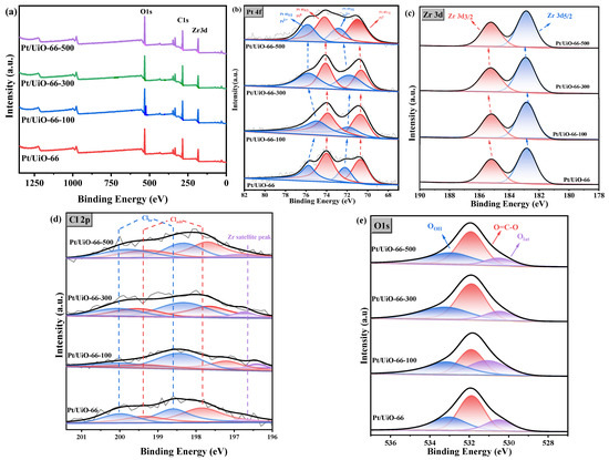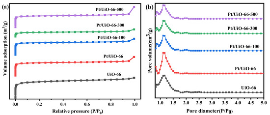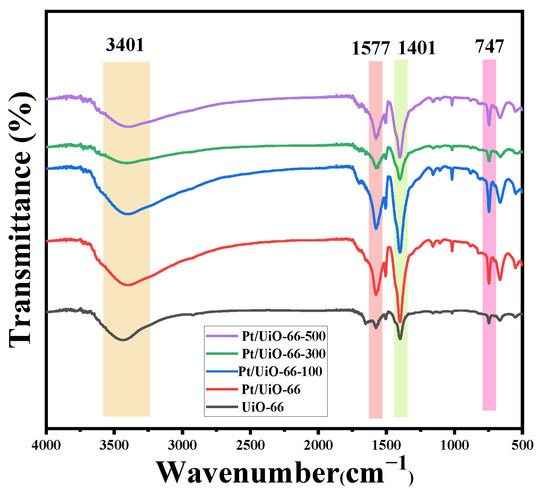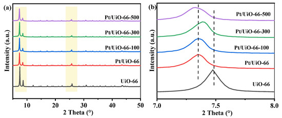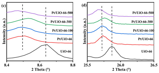 3.2.3. Synthesis of Pt/UiO-66-X (X = 100, 300, 500 kGy)