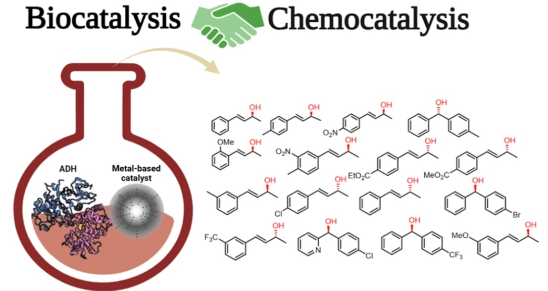 - González-Granda, S.; Lavandera, I.; Gotor-Fernández, V. Alcohol Dehydrogenases and N-Heterocyclic Carbene Gold(I) Catalysts: Design of a Chemoenzymatic Cascade towards Optically Active β,β-Disubstituted Allylic Alcohols. Angew. Chem. Int. Ed. 2021, 60, 13945–13951. [Google Scholar] [CrossRef] [PubMed]