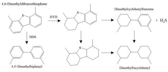 Schematic diagram of 4,6-DMDBT HDS mechanism.