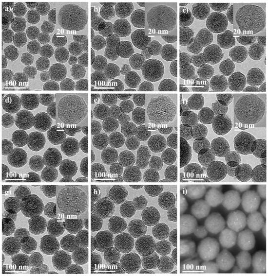 - Chen, H.; Hu, T.; Zhang, X.; Huo, K.; Chu, P.K.; He, J. One-Step Synthesis of Monodisperse and Hierarchically Mesostructured Silica Particles with a Thin Shell. Langmuir 2010, 26, 13556–13563. [Google Scholar] [CrossRef] [PubMed]