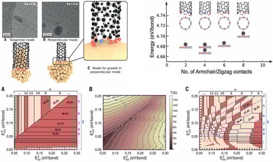 - Magnin, Y.; Amara, H.; Ducastelle, F.; Loiseau, A.; Bichara, C. Entropy driven stability of chiral single-walled carbon nanotubes. Science 2018, 362, 212–215. [Google Scholar] [CrossRef]