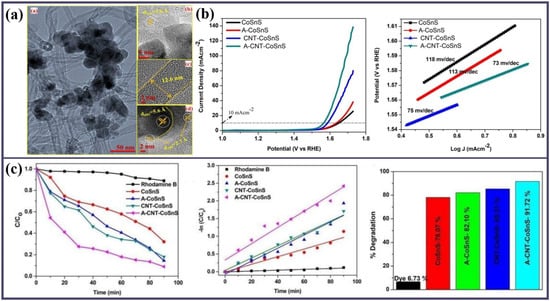 - Jeyagopal, R.; Chen, Y.; Ramadoss, M.; Marimuthu, K.; Wang, B.; Li, W.; Zhang, X. A three-dimensional porous CoSnS@CNT nanoarchitecture as a highly efficient bifunctional catalyst for boosted OER performance and photocatalytic degradation. Nanoscale 2020, 12, 3879–3887. [Google Scholar] [CrossRef] [PubMed]