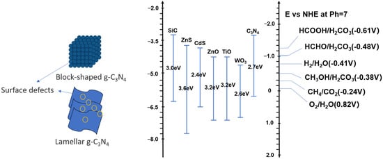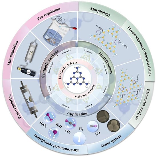 - Chen, M.; Sun, M.; Cao, X.; Wang, H.; Xia, L.; Jiang, W.; Huang, M.; He, L.; Zhao, X.; Zhou, Y. Progress in preparation, identification and photocatalytic application of defective g-C3N4. Coord. Chem. Rev. 2024, 510, 215849. [Google Scholar] [CrossRef]