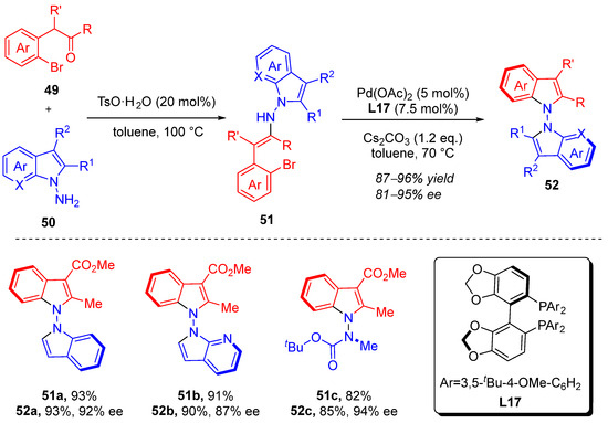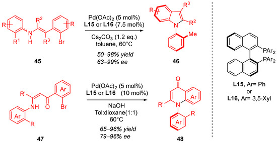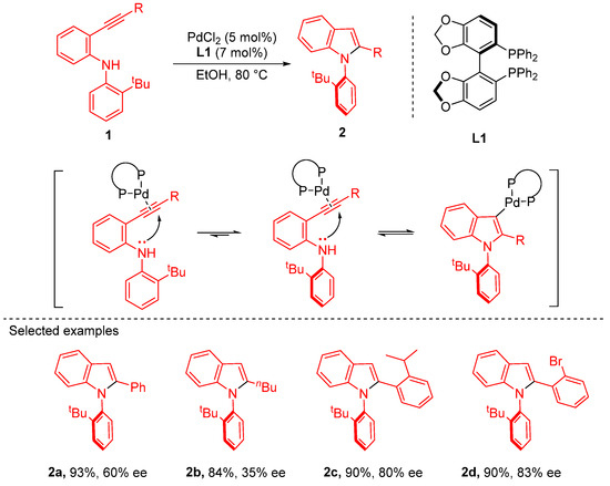 Palladium-catalyzed enantioselective Cacchi reaction [58,59].