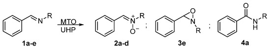 Results in the oxidation of C-phenyl,N-alkyl imines 1a–e with MTO/UHP.