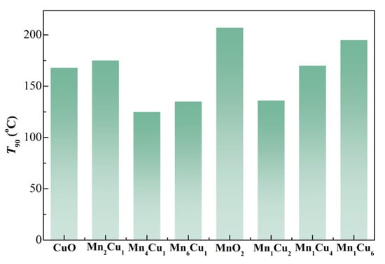 2.1. Effect of Mn/Cu Molar Ratio on Catalytic Activity