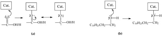 - Gosselink, R.W.; Hollak, S.A.W.; Chang, S.; van Haveren, J.; de Jong, K.P.; Bitter, J.H.; van Es, D.S. Reaction Pathways for the Deoxygenation of Vegetable Oils and Related Model Compounds. ChemSusChem 2013, 6, 1576–1594. [Google Scholar] [CrossRef]