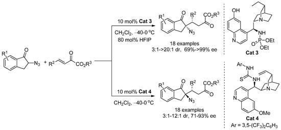 Asymmetric Michael addition reaction of α-azidoindanones with β,γ-unsaturated α-ketoesters.