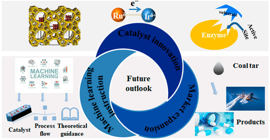 As one of the three major fossil fuels in the world, the coal tar produced by coal pyrolysis has recently attracted widespread attention in the academic community. According to data released by Emergen Research, the global coal tar market size reached USD 14.38 billion in 2020 and is expected to reach further to USD 18.64 billion by 2028, with a CAGR of 3.2% during the forecast period. China is a big producer of coal tar and, according to the literature, China’s coal tar production will reach about 26 million tons in 2022 [1,2].The efficient utilization of this substantial coal tar resource has emerged as a pivotal research direction in energy science. Currently, three primary technological routes exist for coal tar processing: (i) fine chemical separation to obtain monomeric chemical products; (ii) delayed coking involving deep thermal cracking to produce coke, gaseous hydrocarbons, and light oils; and (iii) catalytic hydrogenation technology converting coal tar into high-value clean fuels [3,4]. The development of coal-based specialty fuels has become a national strategic priority under the “dual carbon” policy framework.