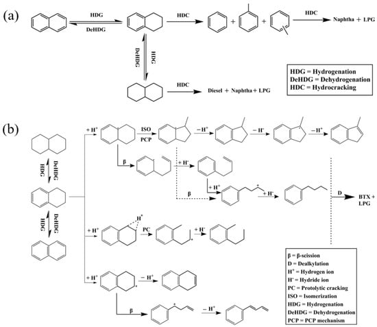 4.1. Hydrocracking Reaction Mechanism of Condensed Aromatics