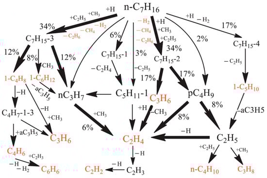 - Wu, Y.; Wang, X.; Song, Q.; Zhao, L.; Su, H.; Li, H.; Zeng, X.; Zhao, D.; Xu, J. The effect of temperature and pressure on n-heptane thermal cracking in regenerative cooling channel. Combust. Flame 2018, 194, 233–244. [Google Scholar] [CrossRef]