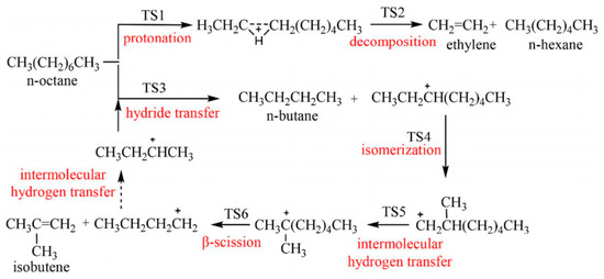 4.2.3. Examples of Typical Catalytic Cracking Reaction Mechanisms of Long-Chain Alkanes