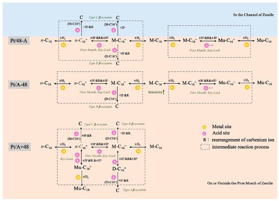 - Zhao, W.; Liu, L.; Niu, X.; Yang, X.; Sun, J.; Wang, Q. Reaction pathways control of long-chain alkanes hydroisomerization and hydrocracking via tailoring the metal-acid sites intimacy. Fuel 2023, 349, 128703. [Google Scholar] [CrossRef]
