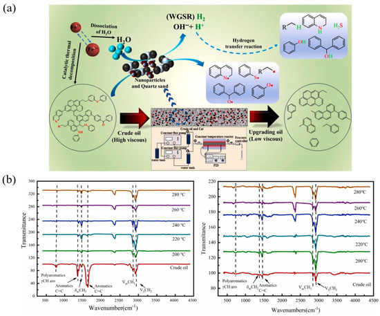 | Oil-soluble catalysts [48,49,50,51,52] | Nickel sulfonate, molybdenum oleate, aromatic metal sulfonate complex | 1. Good compatibility with heavy oil; 2. highly efficient in reducing viscosity. | 1. Complex preparation; 2. high cost. |