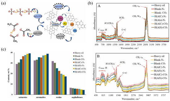 - Abdelsalam, Y.I.I.; Galiakhmetova, L.K.; Sharifullin, A.V.; Tajik, A.; Mukhamatdinova, R.E.; Davletshin, R.R.; Vakhin, A.V. Comparative study of the catalytic effects of Al(CH3COO)₃ and Al₂(SO₄)₃ on heavy oil aquathermolysis in CO2 and N2 atmospheres. Appl. Catal. A 2025, 699, 120247. [Google Scholar] [CrossRef]