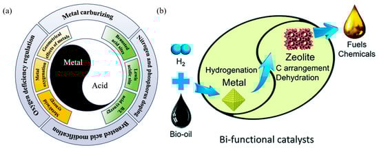 - Shi, Y.; Xing, E.; Wu, K.; Wang, J.; Yang, M.; Wu, Y. Recent progress on upgrading of bio-oil to hydrocarbons over metal/zeolite bifunctional catalysts. Catal. Sci. Technol. 2017, 7, 2385–2415. [Google Scholar] [CrossRef]