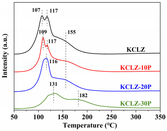 H2-TPR profiles of the calcined KCLZ-xP catalysts.