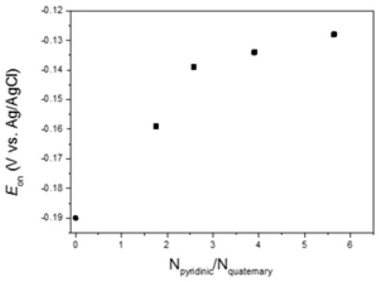 Variation of the onset potential (Eon) for the ORR in 0.1 molar KOH, determined by Linear Square Voltammetry (LSV), with the ratio of Npyridinic/Nquaternary. Reprinted with permission from [].