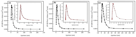 Pore size distribution profiles of (a) pure Ni, (b) pristine NiCuCe, and (c) post-reaction NiCuCe catalysts, corresponding to BJH analysis.