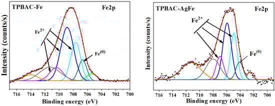 Fe2p XPS spectra for TPBAC-Fe and TPBAC-AgFe samples.
