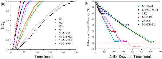 - Yao, X.H.; Zhang, J.; Liang, X.Y.; Long, C. Niobium doping enhanced catalytic performance of Mn/MCM-41 for toluene degradation in the NTP-catalysis system. Chemosphere 2019, 230, 479–487. [Google Scholar] [CrossRef]