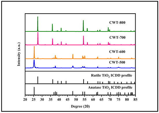 - Yang, L.; Liu, X.; Wang, C.; Liu, Z.; Feng, X. Influence of calcination temperatures on the anatase and rutile mixed phase composition and photocatalytic activity of the carbon doped mesoporous TiO2. Opt. Mater. 2022, 133, 112997. [Google Scholar] [CrossRef]