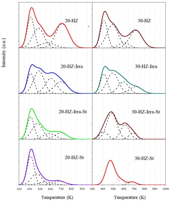 - Katada, N.; Igi, H.; Kim, J.-H. Determination of the Acidic Properties of Zeolite by Theoretical Analysis of Temperature-Programmed Desorption of Ammonia Based on Adsorption Equilibrium. J. Phys. Chem. B 1997, 101, 5969–5977. [Google Scholar] [CrossRef]
