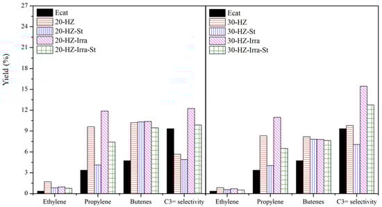 - Zhu, X.; Liu, S.; Song, Y.; Xu, L. Catalytic cracking of C4 alkenes to propene and ethene: Influences of zeolites pore structures and Si/Al2 ratios. Appl. Catal. A Gen. 2005, 288, 134–142. [Google Scholar] [CrossRef]