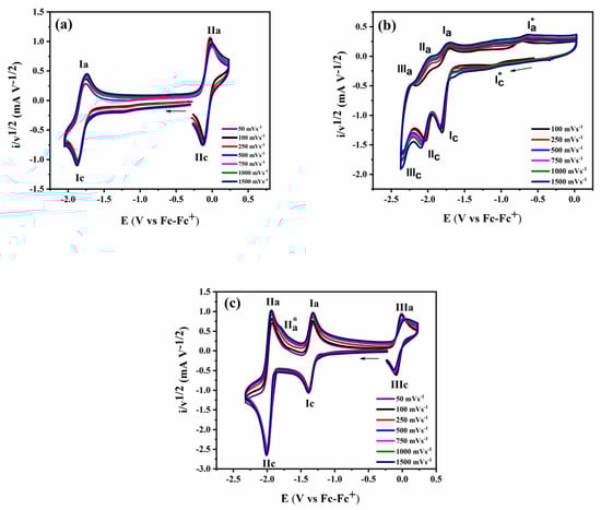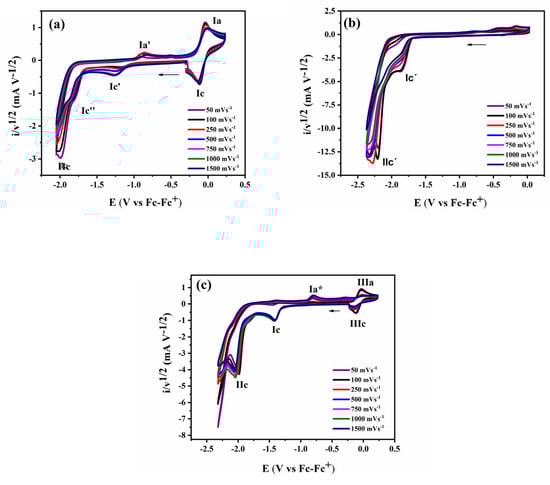2.2. Cyclic Voltammetry Response of Metal Complexes