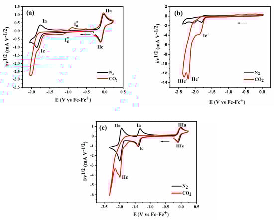 2.3. Cyclic Voltammetry Response of Complexes in the Presence of CO2