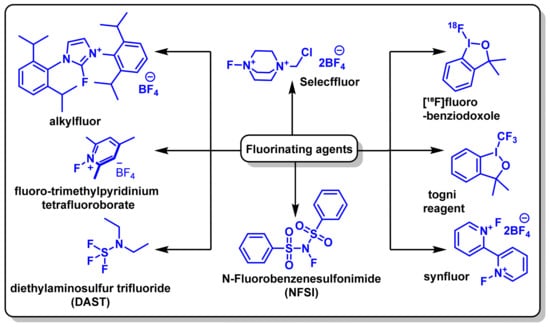 Structural representation of some common fluorinating agents.