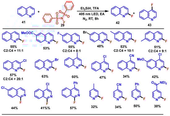 In parallel, the field of catalysis has contributed significantly to advancing fluorination methods. Transition metal catalysts, organocatalysts, photocatalysts, and electrochemical approaches have been applied to achieve site-selective, regioselective, and stereoselective fluorination [,,,,]. These catalytic systems often improve reaction efficiency, broaden substrate scope, and facilitate late-stage functionalization of complex molecules.