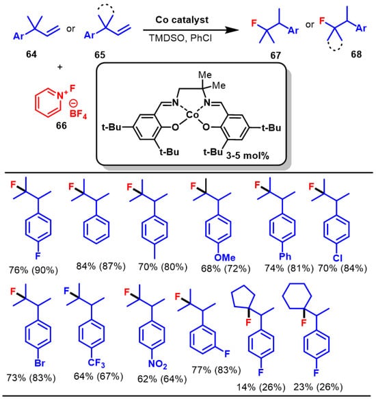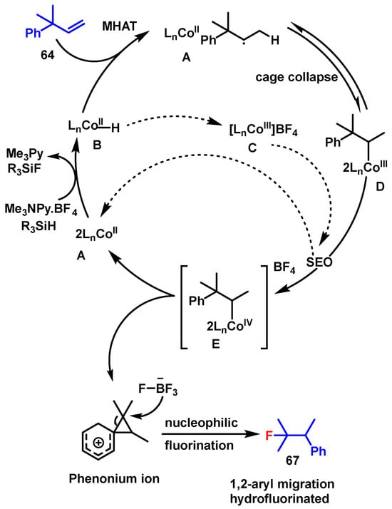 - Hoogesteger, R.H.; Murdoch, N.; Cordes, D.B.; Johnston, C.P. Cobalt-Catalyzed Wagner–Meerwein Rearrangements with Concomitant Nucleophilic Hydrofluorination. Angew. Chem. Int. Ed. 2023, 62, e202308048. [Google Scholar] [CrossRef] [PubMed]