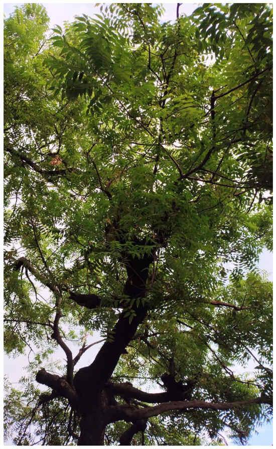 Neem (CJS 16628) [76] is a tree 40–50 feet or higher, with a straight trunk and long spreading branches forming a broad, round crown; it has rough, dark brown bark with wide longitudinal fissures separated by flat ridges. The leaves are compound, imparipinnate, each comprising 5–15 leaflets. The compound leaves are themselves alternating with one another. It bears many flowered panicles, mostly in the leaf axils. The sepals are ovate and about 1 cm long, with sweet-scented white oblancolate petals. It produces yellow drupes that are ellipsoid and glabrous, 12–20 mm long. Fruits are green, turning yellow on ripening, aromatic with garlic like odor [Figure 13] [77].
