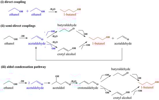 - Scalbert, J.; Thibault-Starzyk, F.; Jacquot, R.; Morvan, D.; Meunier, F. Ethanol condensation to butanol at high temperatures over a basic heterogeneous catalyst: How relevant is acetaldehyde self-aldolization? J. Catal. 2014, 311, 28–32. [Google Scholar] [CrossRef]