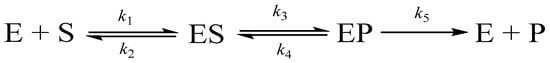 In Scheme 1, k2, k3, k4, and k5 are first-order rate constants, whereas k1 is a second-order rate constant for substrate association [129]. The rate equation for Scheme 1 can be derived using the steady-state approximation as [60,130]