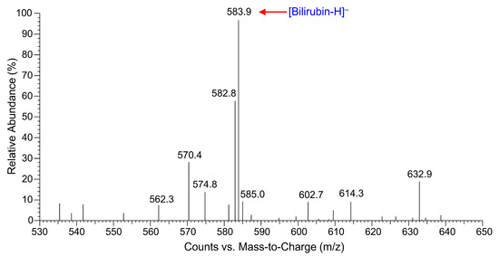 LC-ESI-MS spectrum of biliverdin biotransformation product, confirming its identity as bilirubin.