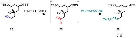 Tandem oxidation and Wittig reaction on compound 25 (TBS = t-butyldimethylsilyl-).