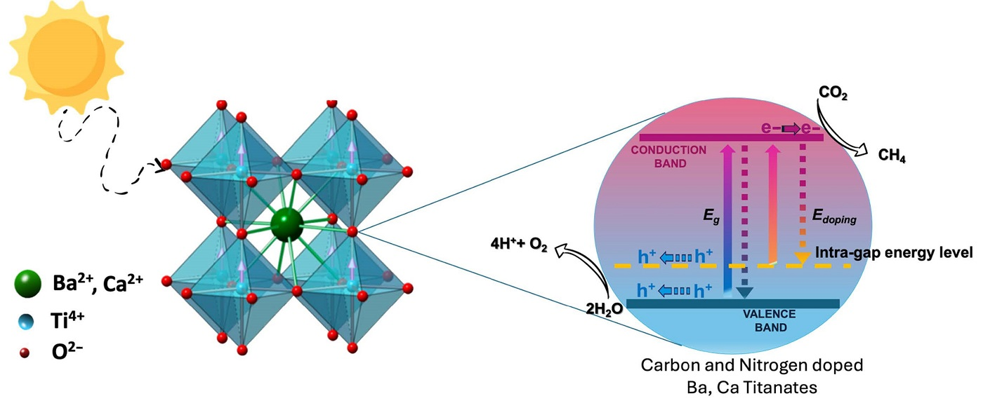 Table 4 shows a comparison with similar perovskite-containing structures applied in the same reaction in some recent works. The reported doped titanates demonstrate such similar or lower activity than our samples. In addition, carbon-doped Ba or Ca-based titanates have not been investigated under solar irradiating conditions, highlighting the novelty of this study within the literature.