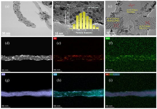 Morphology and element distribution of Pt/20wt.%MnO2-CNTs catalyst, (a) TEM image; (b,c) HRTEM image; (d–i) HAADF-STEM image.