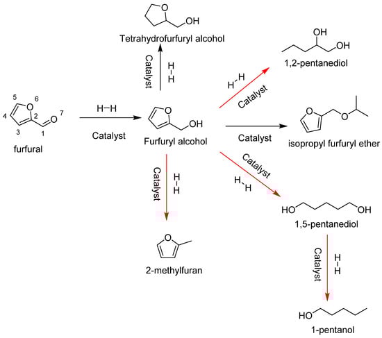 - Xu, W.; Wang, H.; Liu, X.; Ren, J.; Wang, Y.; Lu, G. Direct Catalytic Conversion of Furfural to 1,5-Pentanediol by Hydrogenolysis of the Furan Ring under Mild Conditions over Pt/Co2AlO4 Catalyst. Chem. Commun. 2011, 47, 3924–3926. [Google Scholar] [CrossRef]