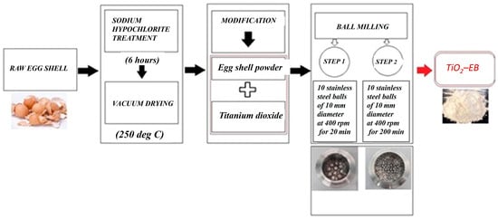 - Baláž, P.; Calka, A.; Zorkovská, A.; Baláž, M. Processing of Eggshell Biomaterial by Electrical Discharge Assisted Mechanical Milling (EDAMM) and High Energy Milling (HEM) Techniques. Mater. Manuf. Process. 2013, 28, 343–347. [Google Scholar] [CrossRef]