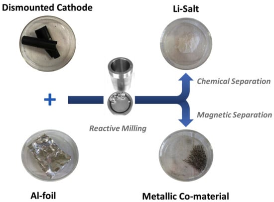 - Wang, M.-M.; Zhang, C.-C.; Zhang, F.-S. An Environmental Benign Process for Cobalt and Lithium Recovery from Spent Lithium-Ion Batteries by Mechanochemical Approach. Waste Manag. 2016, 51, 239–244. [Google Scholar] [CrossRef] [PubMed]