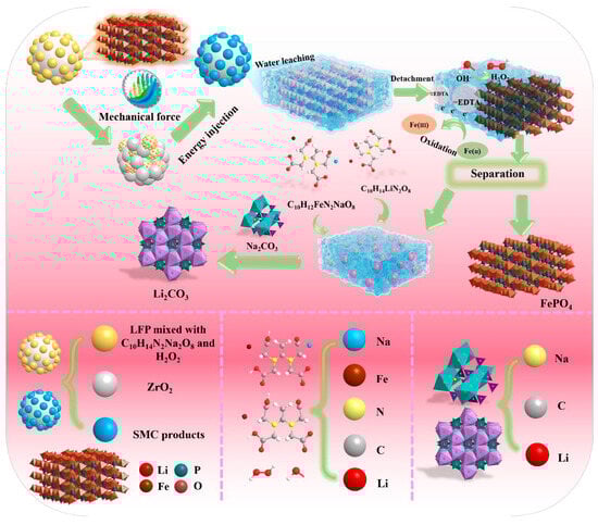 - Liu, Z.; Liu, G.; Cheng, L.; Gu, J.; Yang, J.; Yuan, H.; Chen, Y.; Wu, Y. Ultra-Fast Mechanochemistry Reaction Process: An Environmentally Friendly Instant Recycling Method for Spent LiFePO4 Batteries. Sep. Purif. Technol. 2024, 335, 126174. [Google Scholar] [CrossRef]